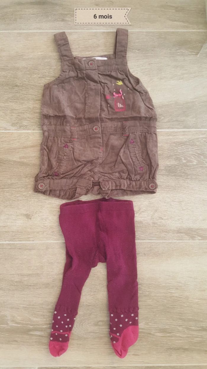 Ensemble composé d'une salopette short et de ses collants assortis. Je vends dans une autre annonce un lot de 2 t-shirts qui peuvent très bien s'assortir avec cet ensemble. Gémo, 6 mois #6mois #6moisfille #6moisaurelilou34