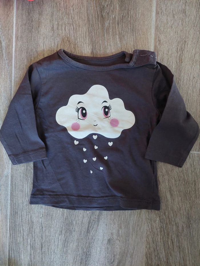 T-shirt manches longues avec 2 boutons au niveau du cou. Taille 3 mois, Kitchoun #3mois #3moisfille #3moisaurelilou34