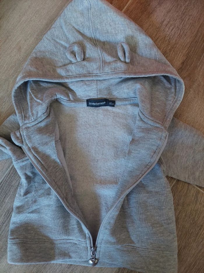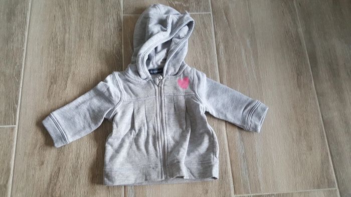 Sweat zippé à capuche avec oreilles dessus. In extenso, 3 mois #3mois #3moisfille #3moisaurelilou34