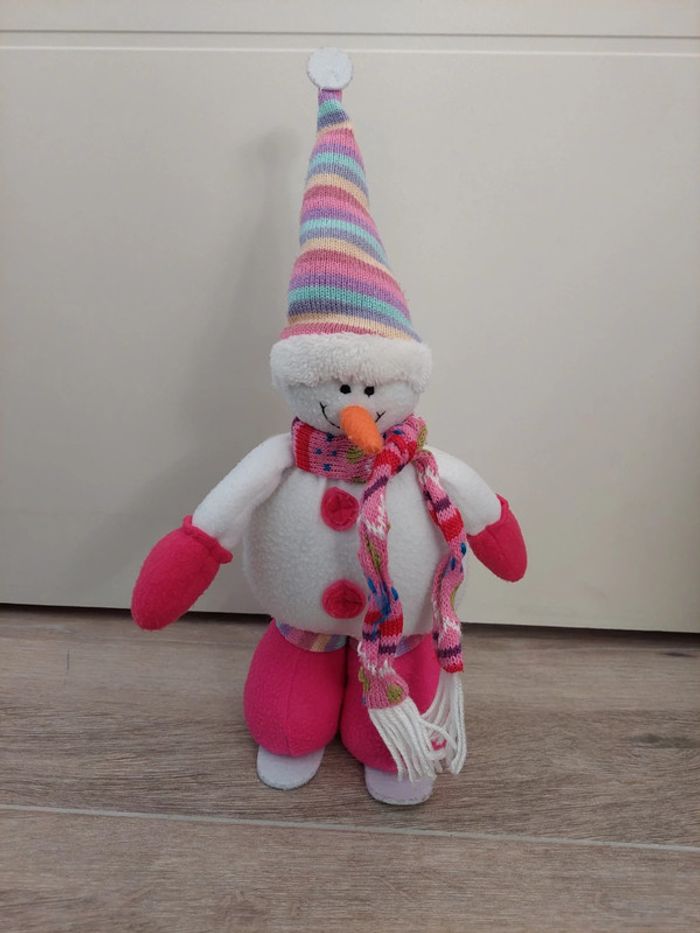 Peluche bonhomme de neige ☃️ sur des skis. Taille 40 cm environ. Cette peluche tient debout toute seule. #peluche #pelucheaurelilou34