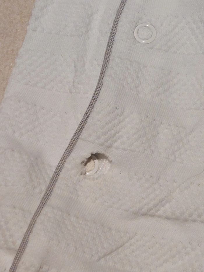 Lot de 2 pyjamas Obaïbi, 3 mois. Défaut de tissus sur une pression pour le pyjama blanc (voir photo). Mais la pression fonctionne parfaitement. #3mois #3moisfille #3moisgarçon #3moismixte #3moisaurelilou34