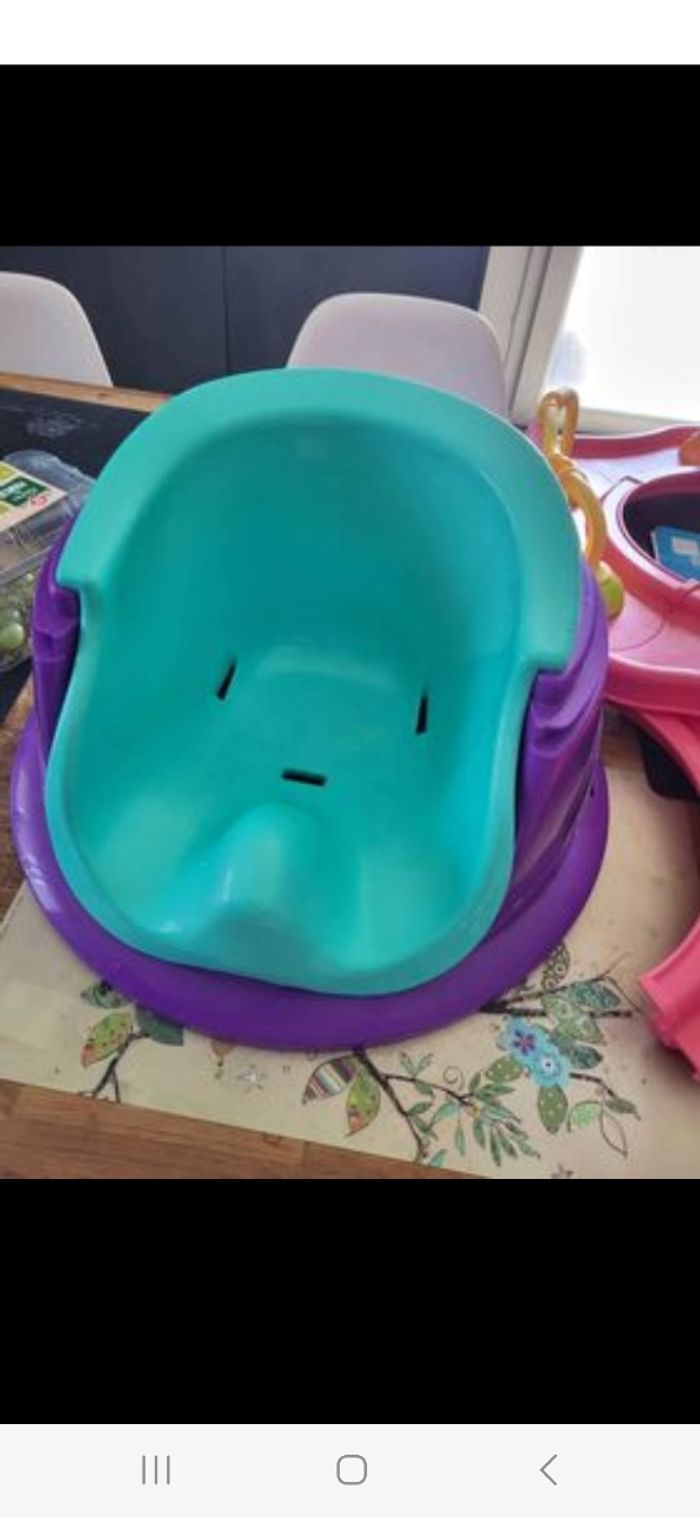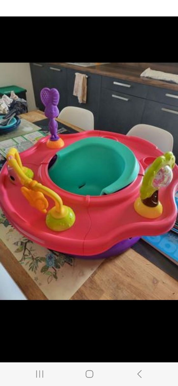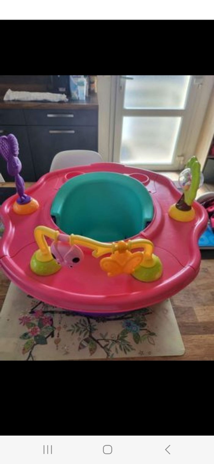 Démontable facilement. Chaise d activité pour occuper bébé. Le plateau rose se tourne facilement pour changer de place les jouets. Possibilité de retirer le plateau pour un siège. Aide à l assise de bébé.