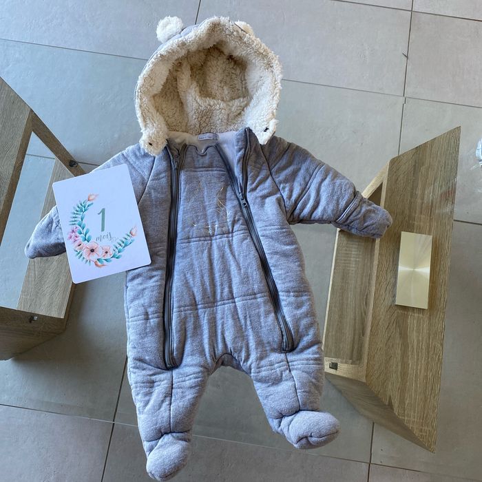 Très bon état. Peluche un peu à l’intérieur de la capuche. Taille naissance / 1 mois