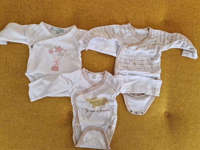 Lot de 3 bodys manches longues mes petits cailloux , 50 cm