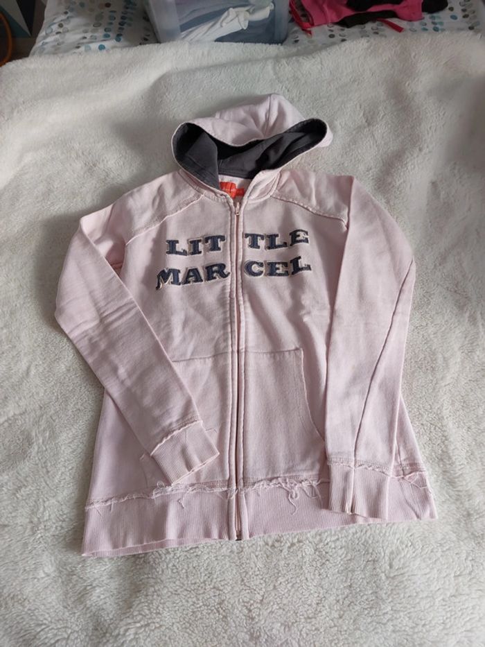 A vendre sweat zippé, de marque Little Marcel, en très bon état, seulement une légère tache sur la manche (voir photo)