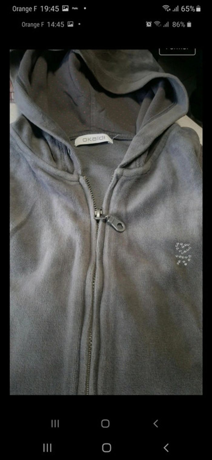 A vendre gilet de marque Okaidi, en bon état, taille 14 ans, matière très douce. La couleur est uniforme, c'est le flash de la photo qui donne une impression de décoloré.