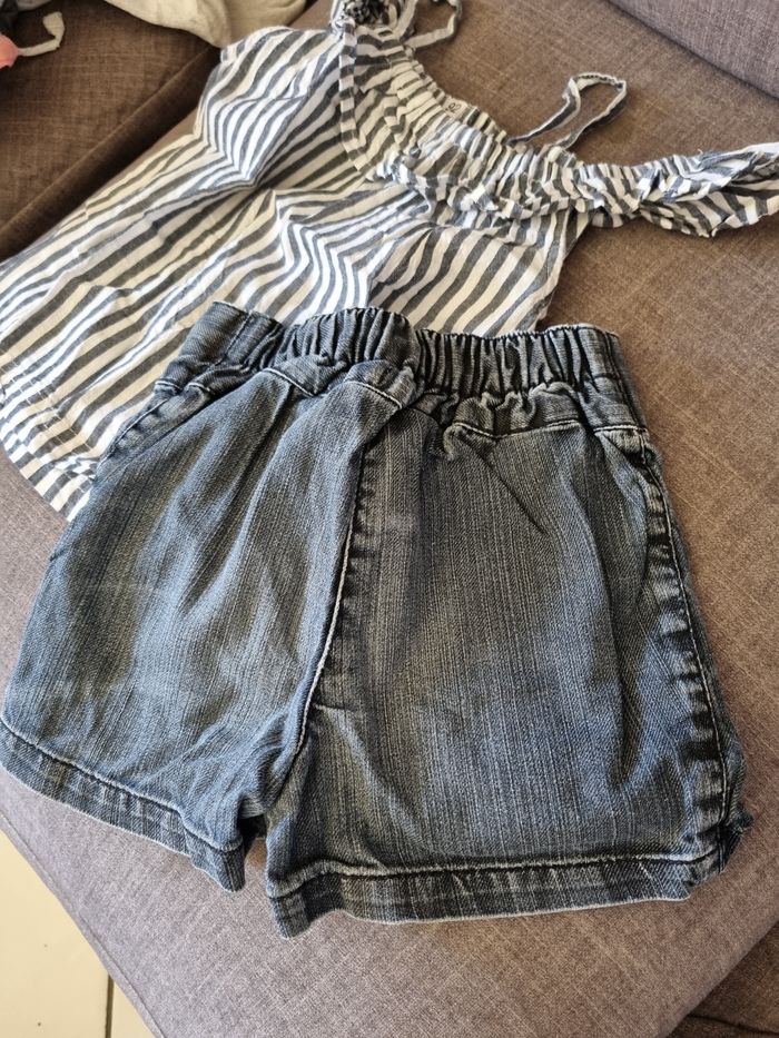 T-shirt à bretelle gris et blanc Jupe short en jeans