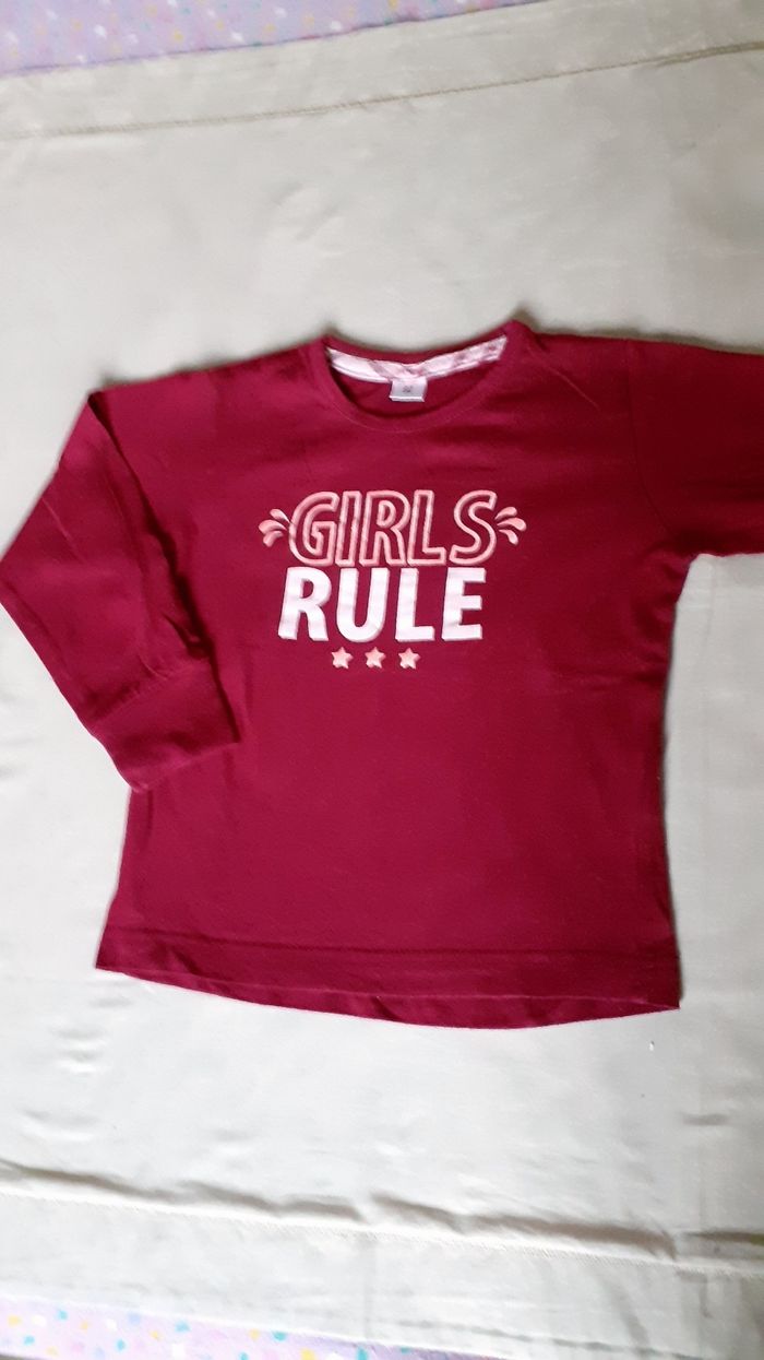 Vends un tee-shirt manches longues en coton couleur bordeaux taille 26 mois ou 92 cm.