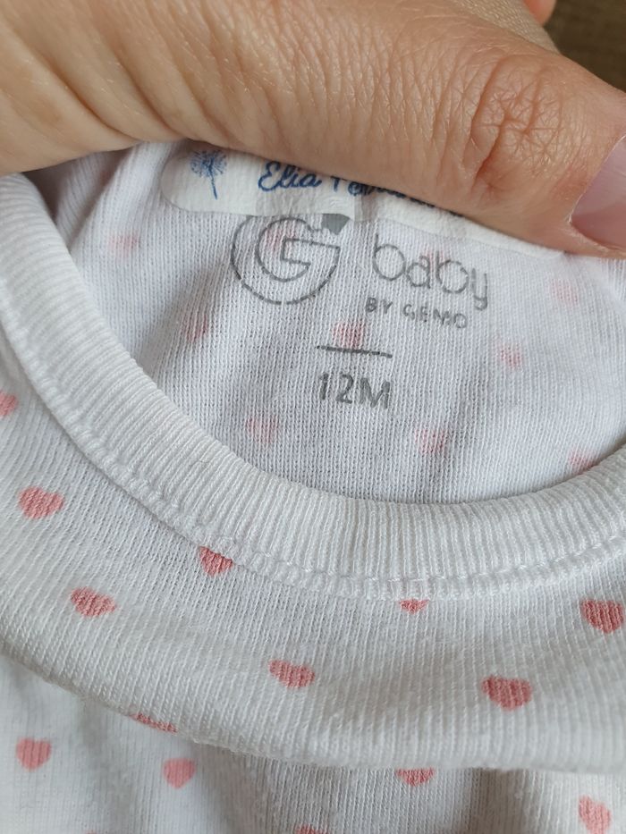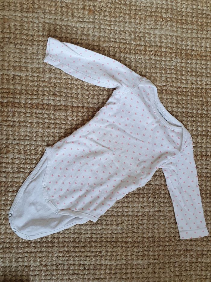 Bodie 12 mois gémo, blanc à cœurs rose.