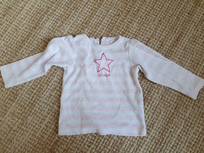 Un haut 18 mois Kimbaloo, un haut petit bateau 5 ans. Tout deux état moyen car ont perdu leur douceur.