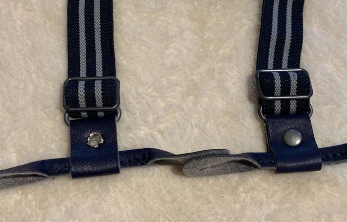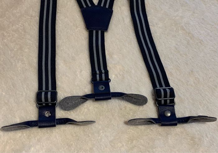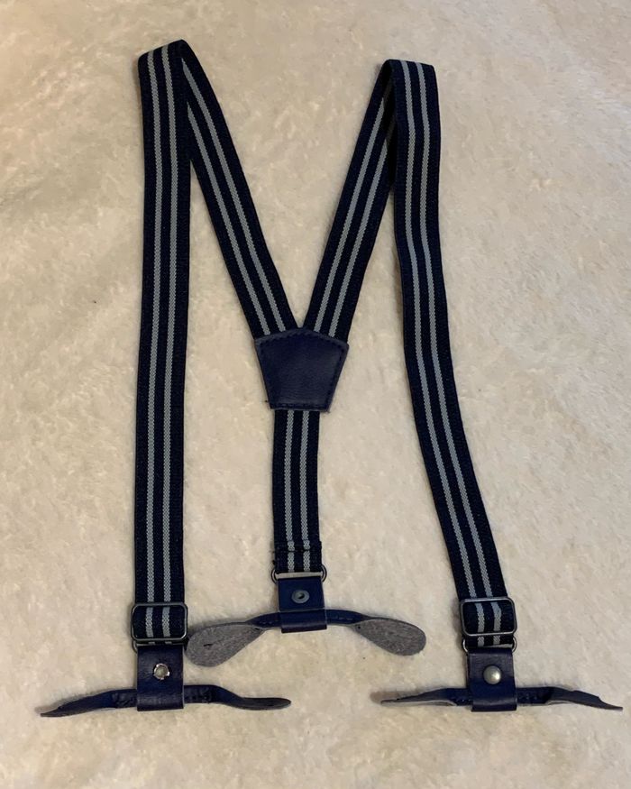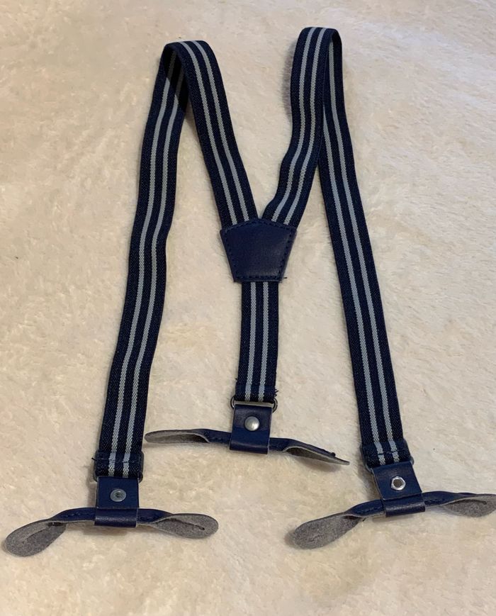 Bretelles élastiques pour enfant pour boutons, réglables L58 x 2cm, bleu/gris Petit réparation sur un rivet, regarder les photos #bretellesenfant #bretelleselastique #garcon
