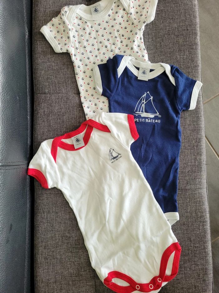 Lot de 3 bodies Manches courtes En parfait état Comme neuf Porte 1 fois pour l'un des 3 6 mois Petit Bateau
