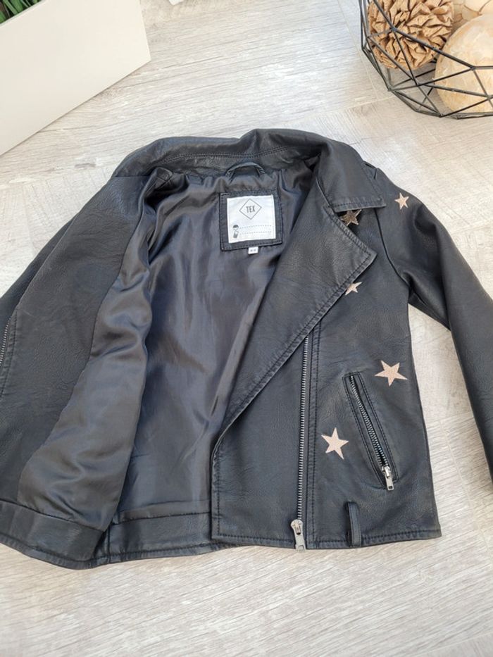 Magnifique veste neuve !!! 4-5 ans Simili cuir noir avec étoiles dorées TEX