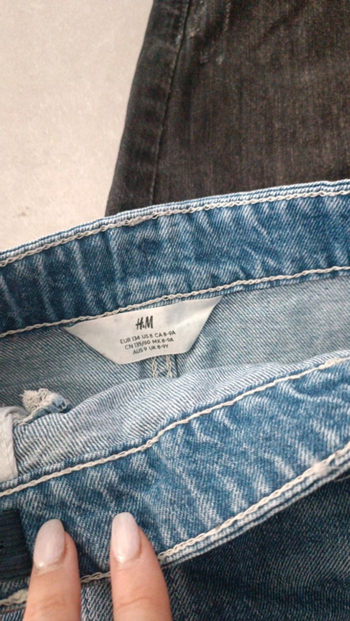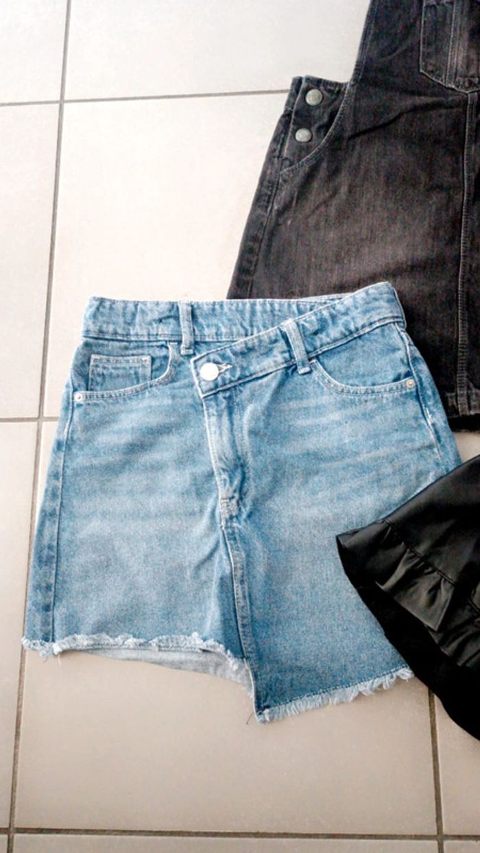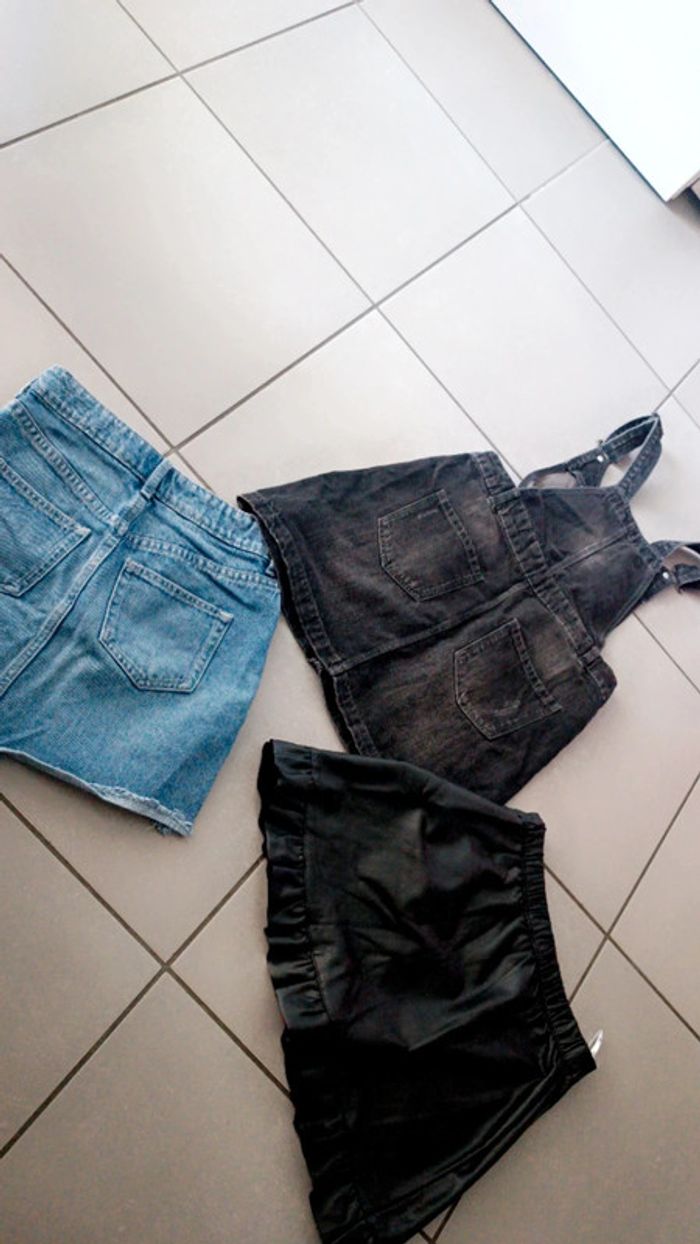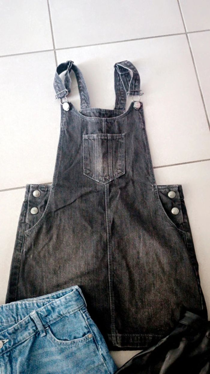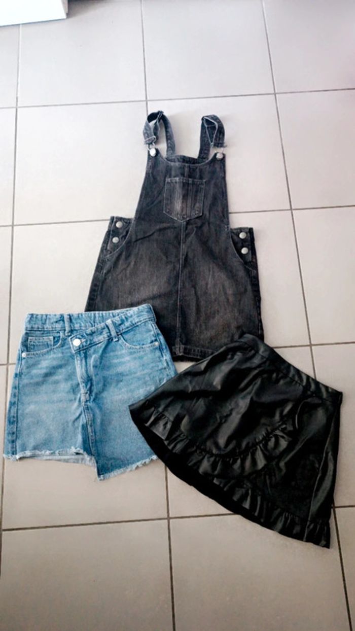 Lot comprenant - une salopette en jean Kiabi, étiquette 10 ans mais va plutôt à un 8/9 ans, un petit accro devant à droite cf photo, - une jupe en jean asymétrique h&m - une jupe en similicuir souple