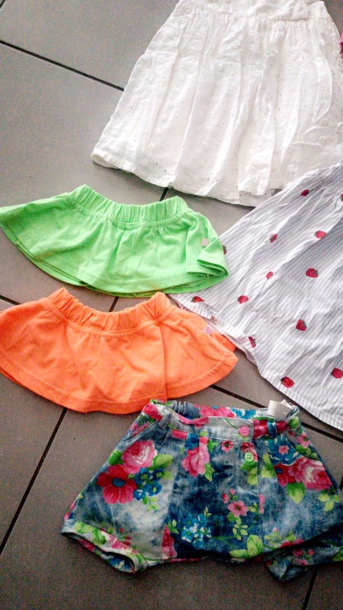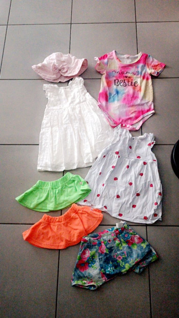 2 robes et un chapeau h&m 2 jupes short fluo neuves 1 short fleuri (étiquette 6 mois mais c'est du 9 mois) Un body flashy Peu portés excellent état Prix pour le lot #laura845baby