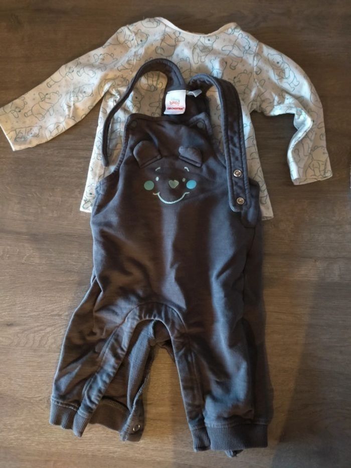 Parfait état Porté 2 fois 6 mois Salopette : ouverture à l'entre jambes t-shirt manches longues : ouverture totale au dos Motif Winnie l'ourson
