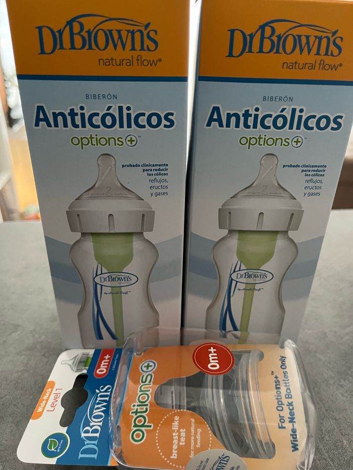 2 biberons dc Brown’s a cil large avec un lot de tétine taille 0mois+ NEUF