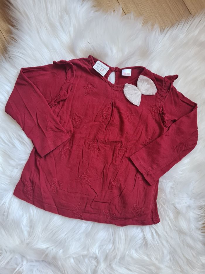 Haut Bordeaux avec papillon brodé par tout Avec petite volant aux manches Zara 2/3 ans 98cm