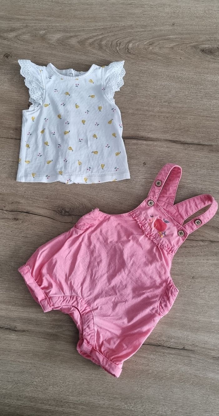 Magnifique ensemble incluant un t-shirt à manches courtes et une salopette short Orchestra taille 1 mois Collection été 2023 État neuf