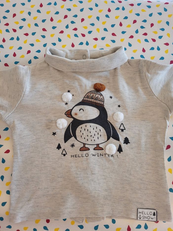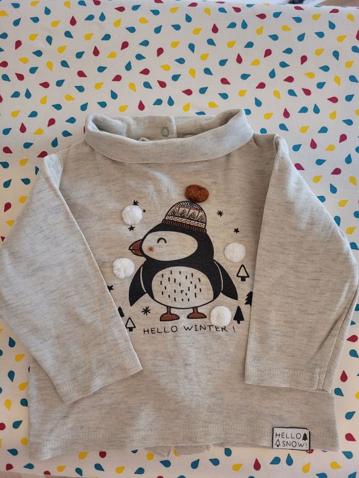 T shirt manches longuesl motif pingouin - photo numéro 1