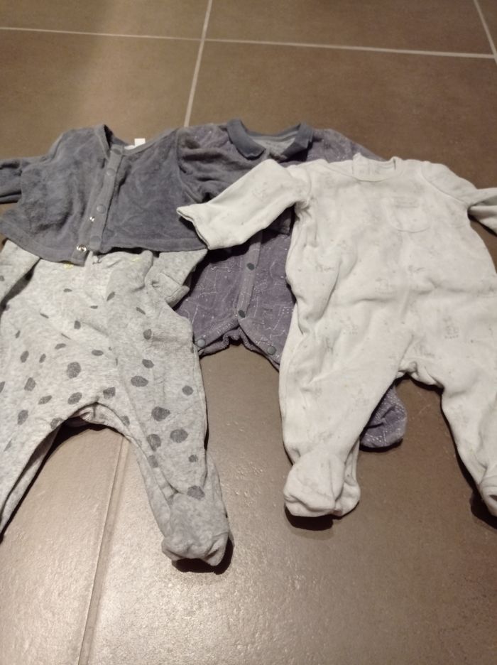 Je vends 3 pyjamas en velours 1 mois, sergent major et dpm