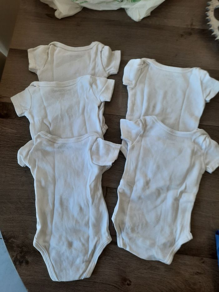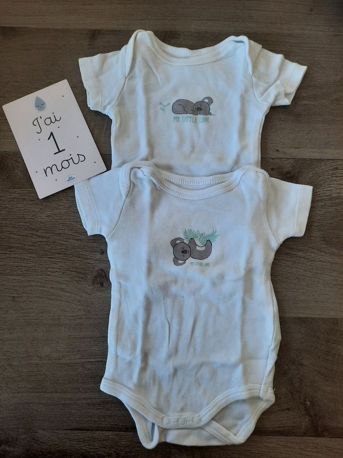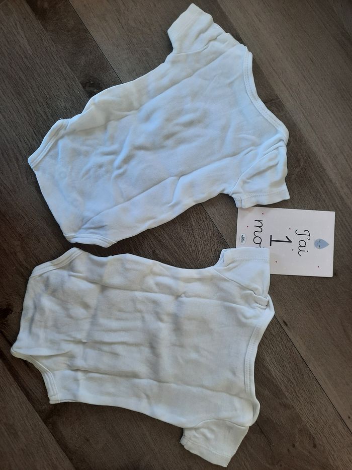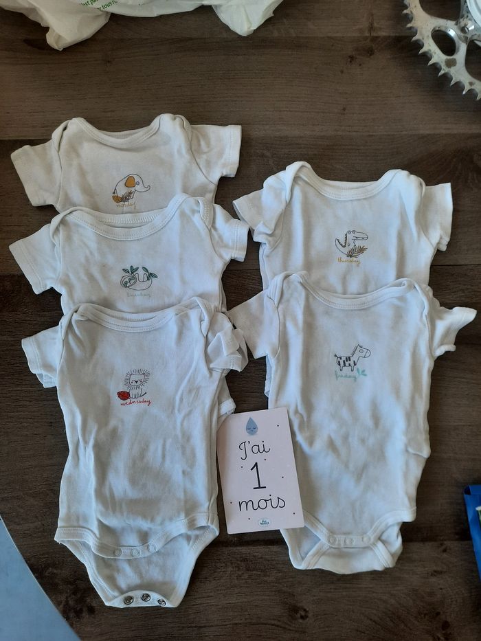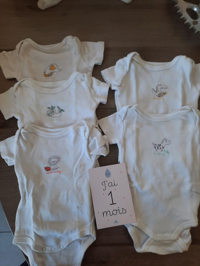 Lot de 7 bodies taille 1 mois Mixte fille ou garçon Marque in extenso Enfilé par la tête et pression entre jambe État parfait