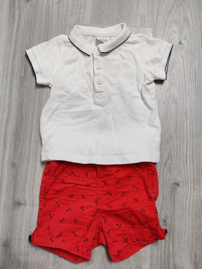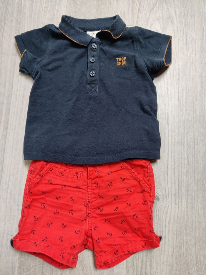 Ensemble composé d'un short rouge motifs encre marine et de 2 polos. Kiabi et Tape à l'oeil 9 mois Très bon état #elina_9mois
