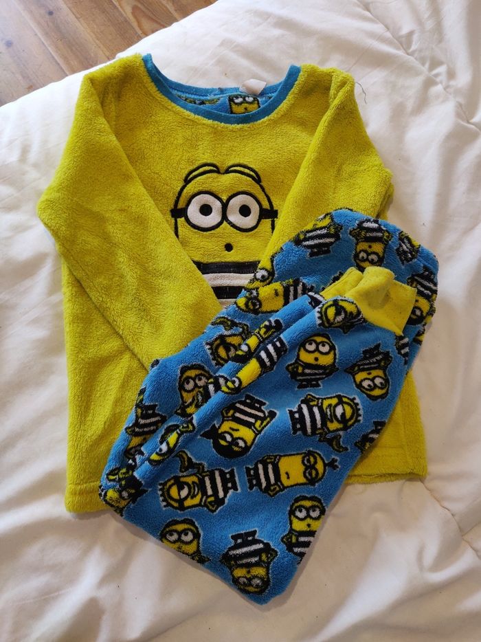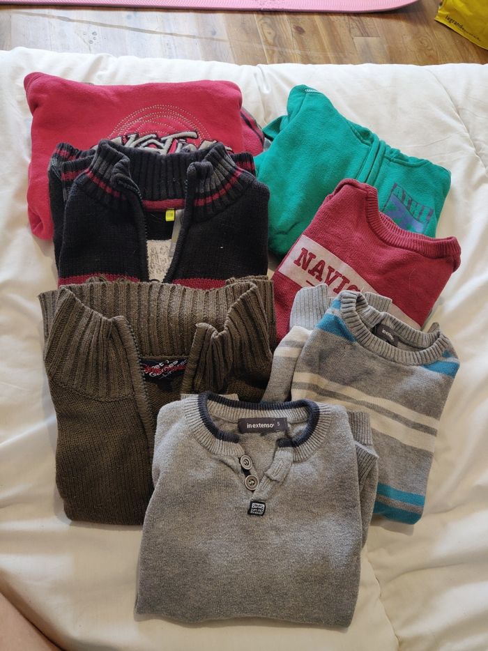 Lot comprenant : - 1 pyjama minions - 4 pantalons ( dont 1 avec une petite tâche sur la poche ) - 2 t-shirt à manches courte - 7 pulls dont 2 sweat à capuche