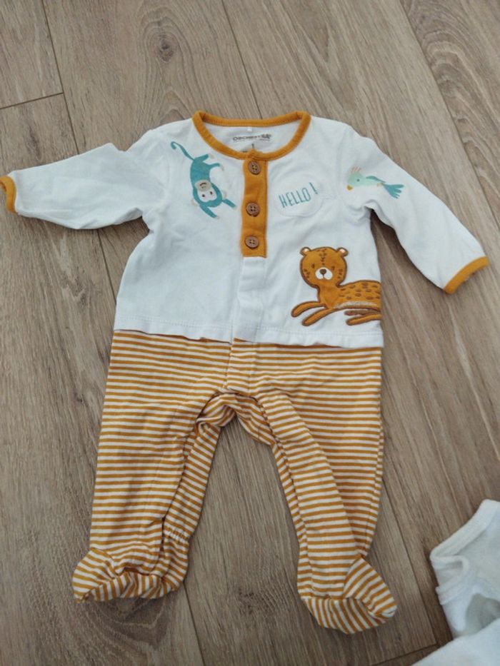 Lot de 7 pièces. ✨ Plusieurs marques, Orchestra, Kiabi, Smiley, P'tit bisou *4 pyjamas *2 bodies manches longues *1 bodie manches courtes Réduction sur les lots 🪷 N'hésitez pas à faire un tour dans mon dressing 😉