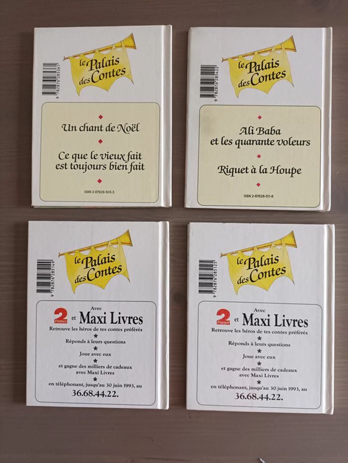 Lot comprenant 4 livres de contes : _ Le Petit poucet + Les Fées + Florentin et Florentine _ Un chant de Noël + Ce que le vieux fait est toujours bien _ Ali Baba et les quarante voleurs + Riquet à la Houpe _ Le vaillant petit tailleur + Les douze chasseurs Petit pli de la feuille recouvrant la couverture su un des livres sinon ils sont en très bon état. #guilea123livres