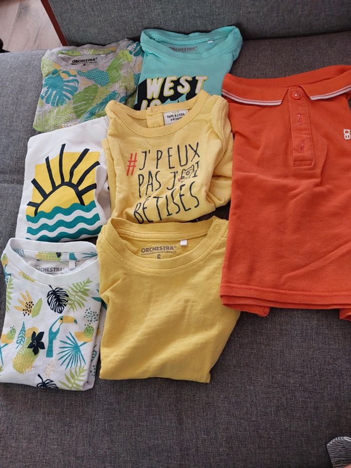 Lot de tee shirt et polo Taille 6 mois En très bon état. Plusieurs marques (Obaibi, orchestra, tape à l'oeil)