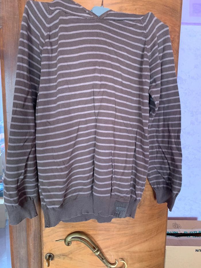 pull léger a capuche kaki rayé 14 ans