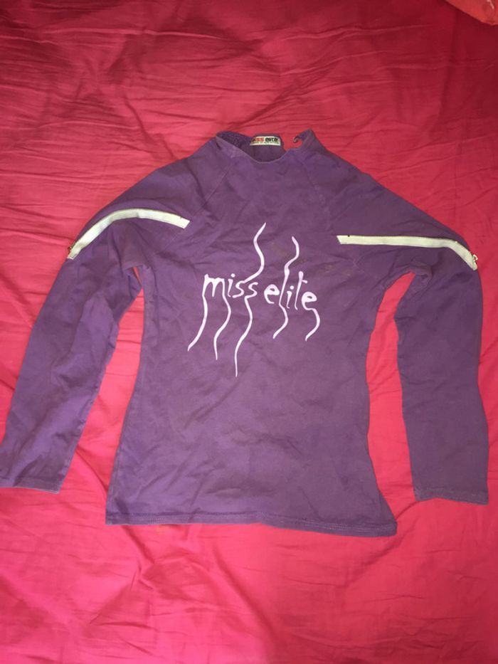 tee shirt manche longue violet 14 ans inscription miss elite sur le devant 14 ans