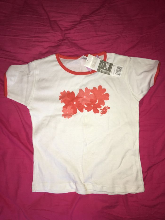 tee shirt blanc décor fleur neuf