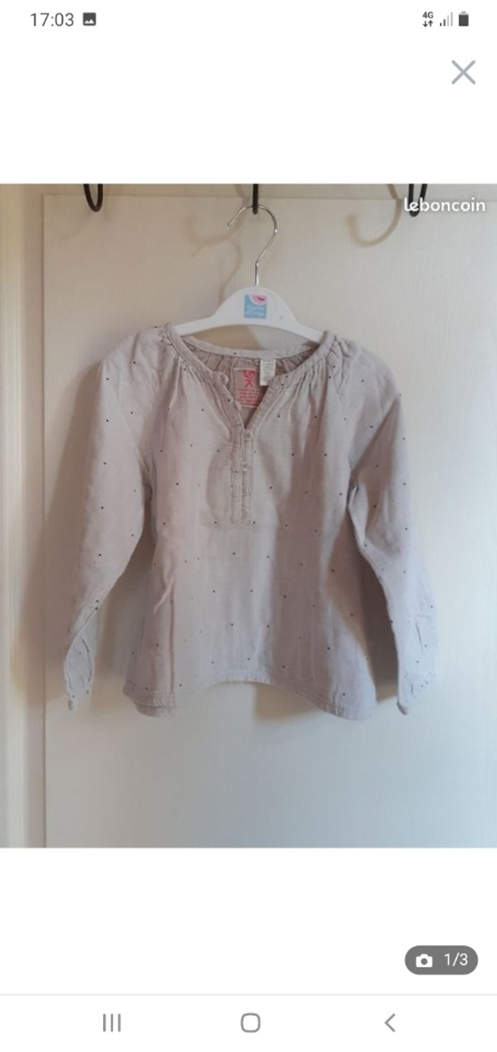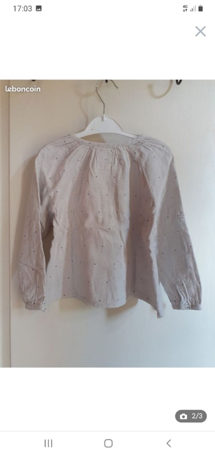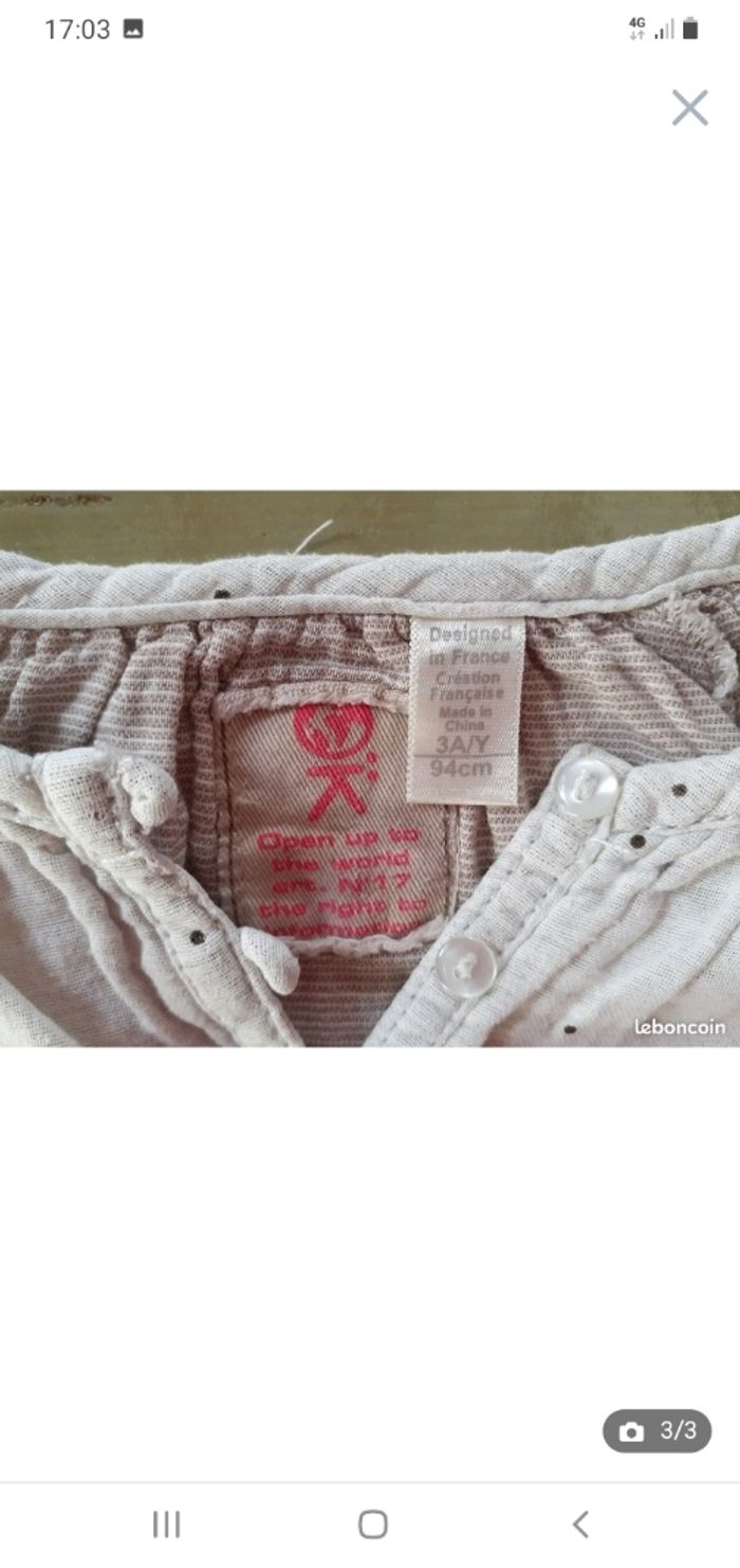 Tunique fille, légère, manches longues. Plutôt large au niveau du corps. Taille 3 ans. Bien porté mais encore en très bon état.
