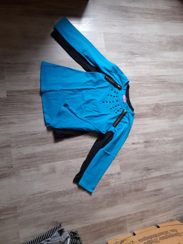 #jessicadebreu12ansfille porté 1 fois mais petite tache sur le bord de la manche Pour la taille c'est ecrit s et 7/8 mais correspond à un 12 ans regardé photo 2 j'ai mis en dessous un tee shirt noir taille 12 ans de chez orchestra pour que vous puissiez vous rendre compte