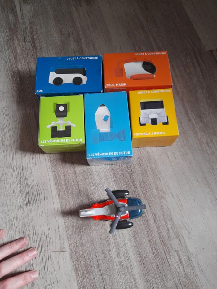 #jessicadebreujouetgarcon Lot de 6 Véhicules à construire dont un neuf sous plastique et un sans boite et un ( le bus) manque une pièce