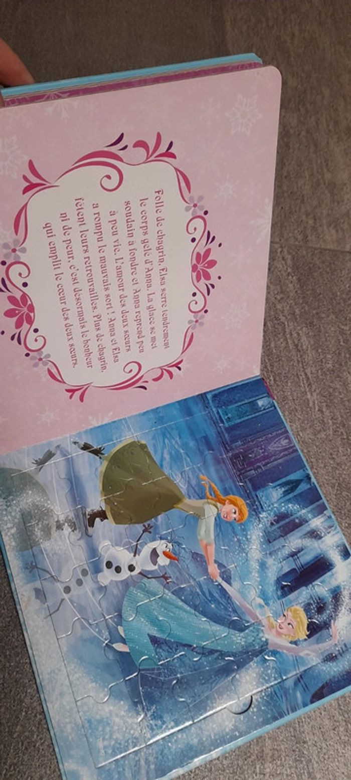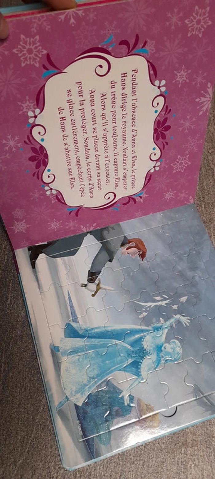 #jessicadebreulivreenfant Livre puzzle reine des neiges très bon etat juste un defaut voir dernière photo
