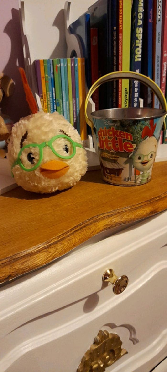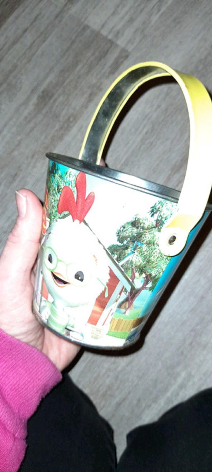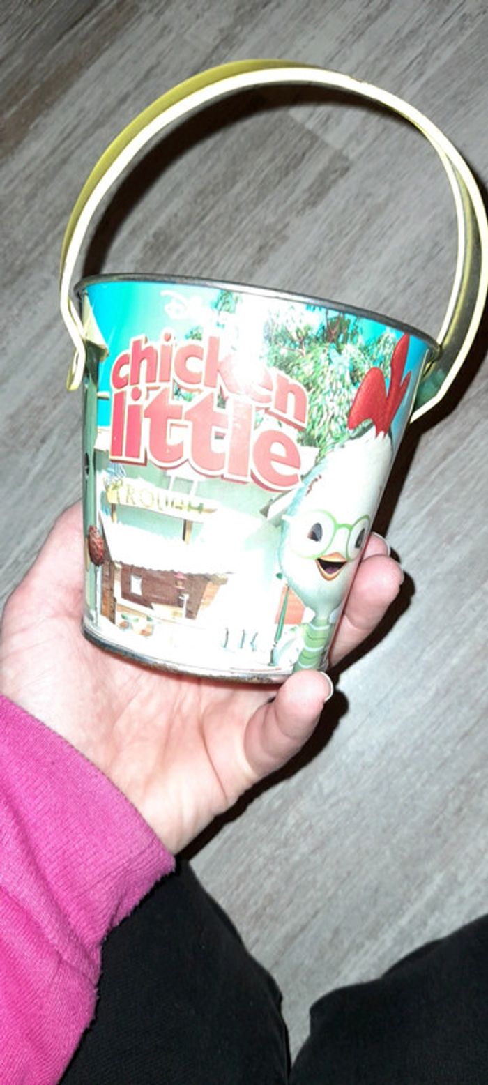 Livre doudou disney chiken little tres bon etat +un seau en metal etat moyen #jessicadebreulivreenfant