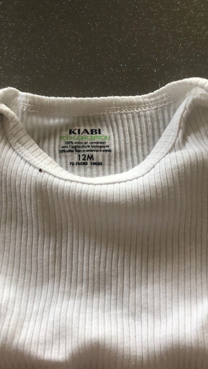 Marque: kiabi Taille: 74 Mois: 12 mois État: bon état ( une tâche à l’arrière ) Fermeture: à pression