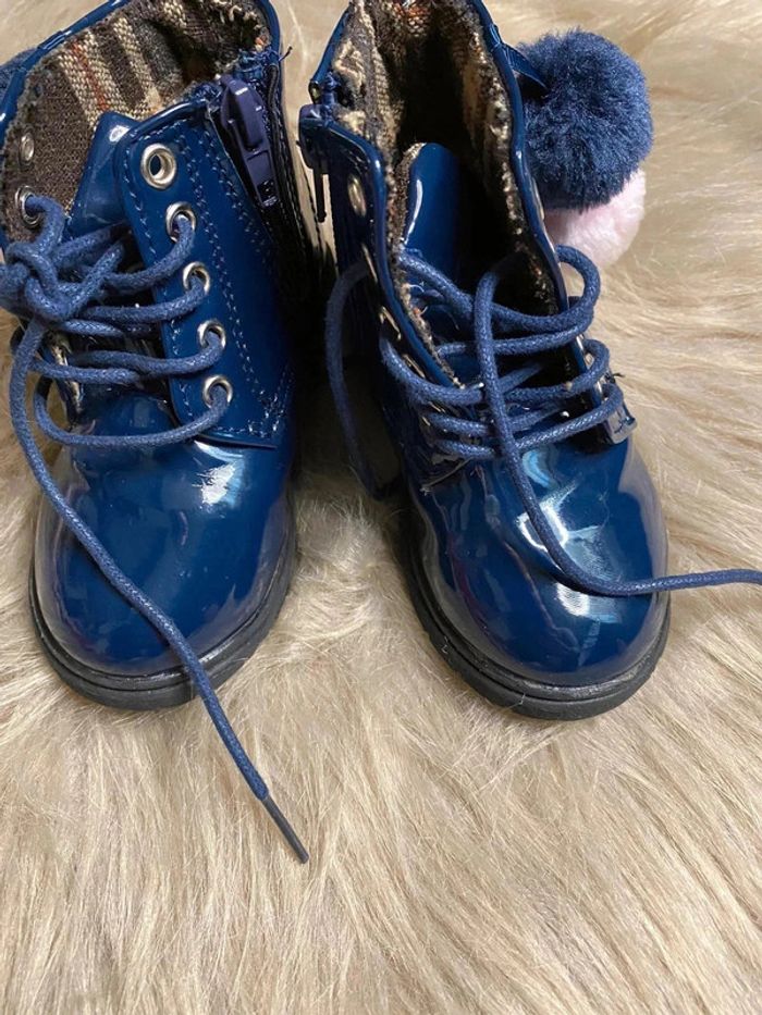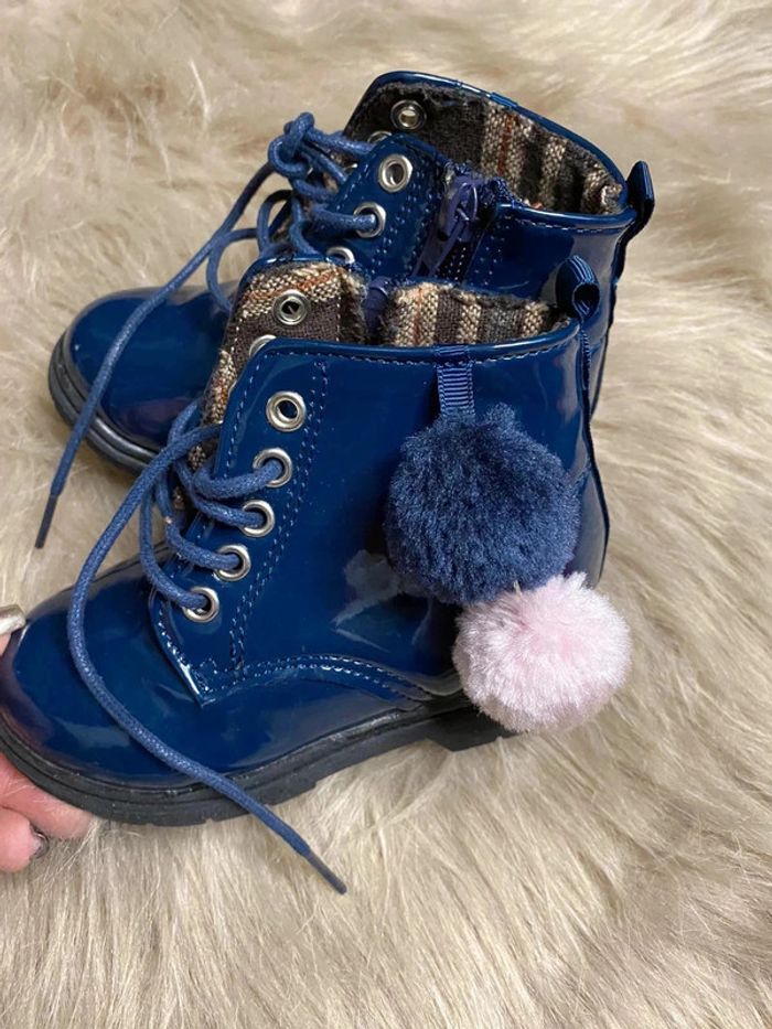 Bottines bleu vernies pompom - photo numéro 1