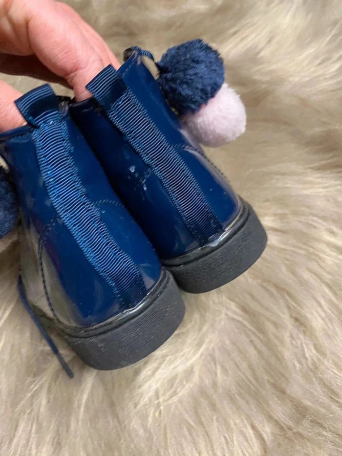 Bottines bleu vernies pompom - photo numéro 2