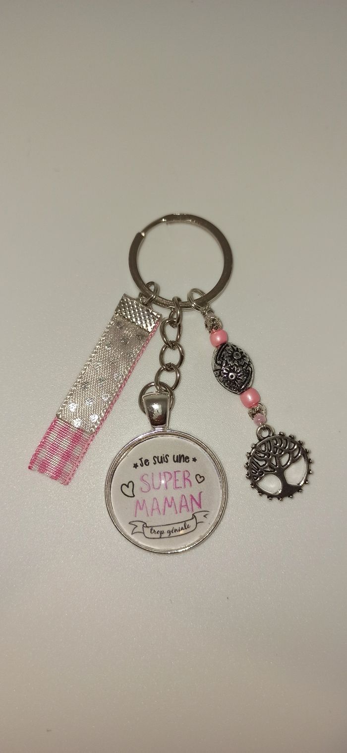 Porte clé message bijoux de sac " Super maman trop géniale"
