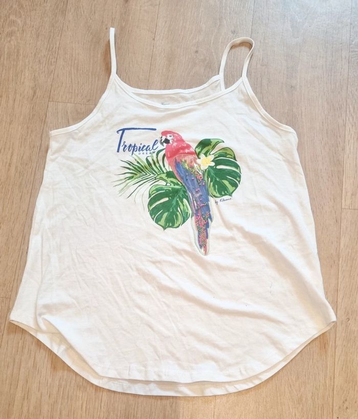 Débardeur 13/14 ans blanc Motif 3D Tropical summer Petite tâche de stylo à peine visible