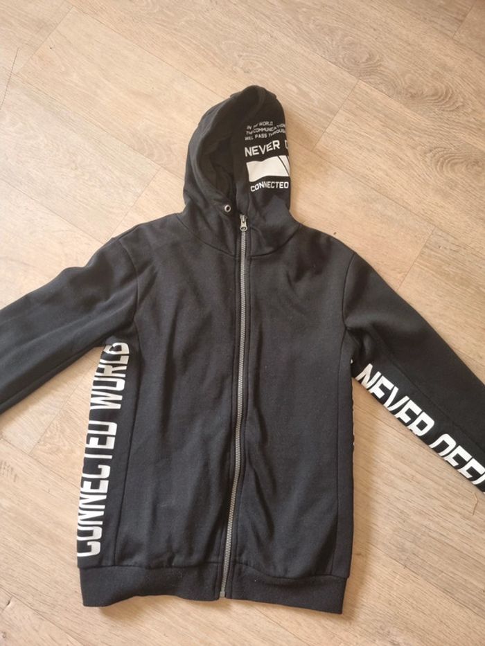 Gilet sweat long zippé à capuche Noir Kiabi 14 ans