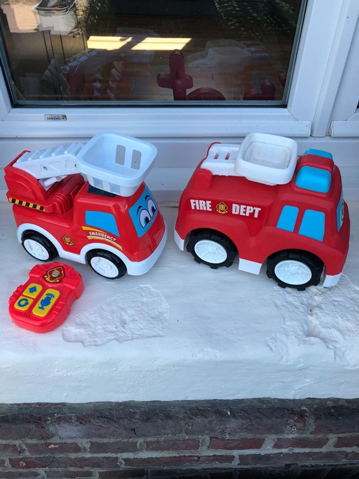 Camions pompiers dont un télécommandé en très bon état.