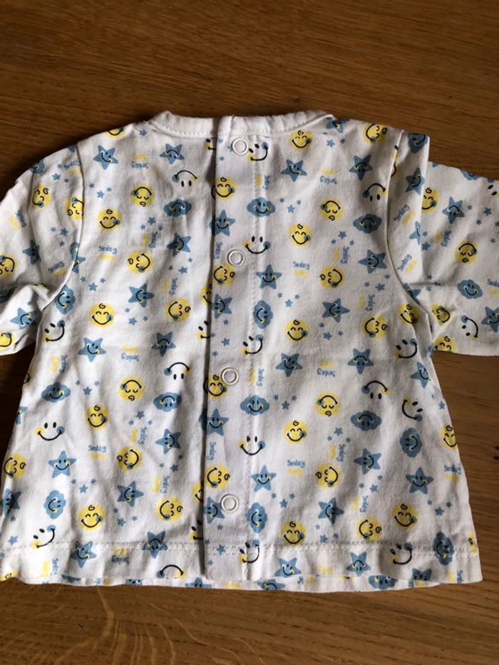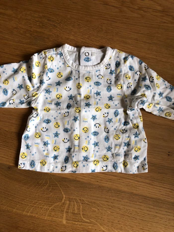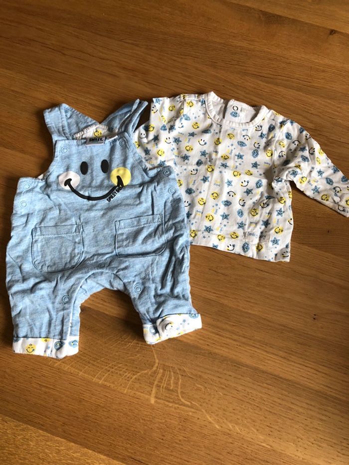 Ensemble Orchestra Taille 1 mois en très bon état. - Tshirt manches longues avec pressions tout le long du dos pour faciliter l’habillage. - Salopette pantalon avec pressions au niveau des bretelles, des côtés et de l’entre jambes.