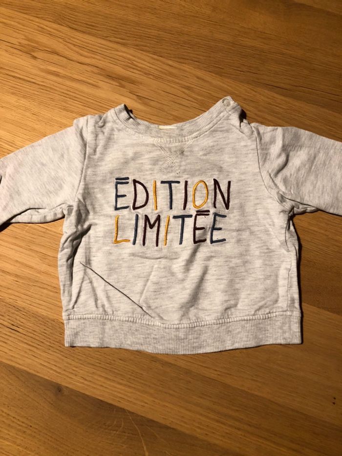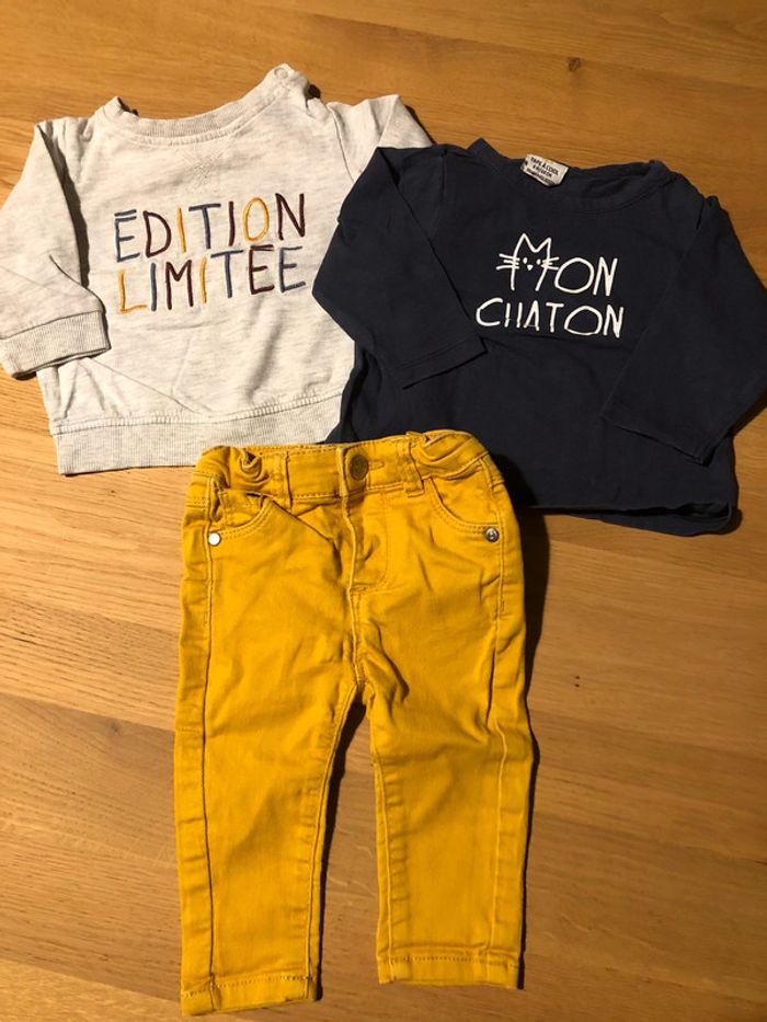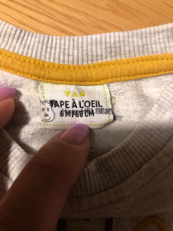 Ensemble Tape à l’œil Taille 6 mois en très bon état. - Pull avec des pressions au niveau du cou pour faciliter le passage de la tête. - Tshirt manches longues avec des pressions au niveau du cou pour faciliter le passage de la tête. - Jean avec élastiques pour régler la taille.