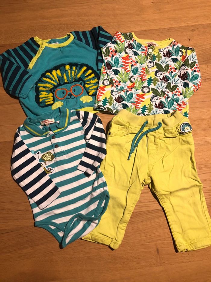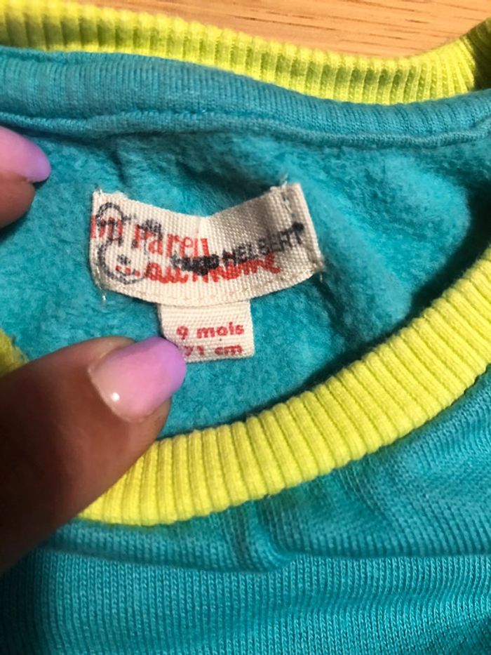 Ensemble Hérisson Du Pareil au Même Taille 9 mois en très bon état : - Pull chaud avec boutons au niveau du cou pour faciliter le passage de tête. - T-shirt manches longues avec boutons devant pour faciliter le passage de tête. - Bodies à col manches longues avec pressions devant pour faciliter le passage de tête. - Pantalon doublé élastique à la taille. - Paire de chaussettes 15/18.