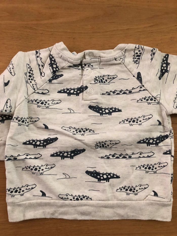 Pull Taille 9 mois en très bon état avec pressions dans le dos pour faciliter le passage de la tête.